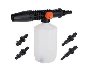 Пенокомплект GTR 400 PATRIOT 322305755 применяется совместно с мойками высокого давления для мытья автомототехники, садового и строительного инструмента, обработки каменных и деревянных поверхностей защитными средствами, возводимыми водой. Формирует стойкую густую пену. В комплекте имеются переходники, благодаря которым возможно использование пенокомплекта с мойками различных производителей, таких как PATRIOT, KARCHER, BOSCH, STIHL, Black and Decker, CHAMPION, MAKITA, ELITECH, Интерскол, PRORAB, STURM.
