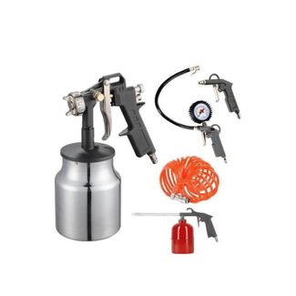 Набор окрасочного инструмента PATRIOT 5 предметов KIT 5В 830901055 позволяет проводить разного рода работы. Он включает 5 предметов: краскораспылитель с верхним бачком, продувочный и промывочный пистолеты, пистолет для накачки шин и спиральный шланг.