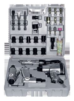В комплект набора входят: пневмодолото, 3 зубила 120 мм с круглым хвостовиком, пневмогайковерт, 10 головок 1/2", 1 угловой пневмогайковерт, пневмошлифмашина, 3 шлифкамня 6 мм, 1 ключ шестигранный 6 мм, 1 разъем рапид муфта, 2 гаечных ключа, 1 возвратная пружина, 6 разъемов рапид штуцер, 1 удлинитель 1/2" на 75", 1 масленка, 1 переходник 3/8" на 1/2" None
