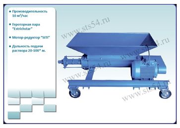 Насосгероторный ГН-10предназначен для напорного транспортирования пенобетонных, полистиролбетонных растворов с фиброволокном или твердыми частицами размером до 5 мм. Хорошо зарекомендовал себя при заливке непосредственно на строительных площадках. Общая рекомендуемая область применения – перекачивание пенобетона, полистиролбетона, малярных и штукатурных растворов, шпатлевок, эмульсий, шламов и др. С помощью насоса возможно транспортировать смесь до 20* м. по вертикали и до 100* м. по горизонтали.