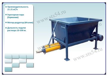 Общая рекомендуемая область применения – перекачивание полистиролбетона, пенобетона, а также малярных и штукатурных растворов, шпатлевок, эмульсий, шламов и др. Насос предназначен для напорного транспортирования составов с фиброволокном или твердыми частицами размером до 16 мм. Используется для работы в помещениях и непосредственно на строительных площадках. Насос позволяет осуществлять транспортирование смеси до 20* м. по вертикали и до 100* м. по горизонтали.