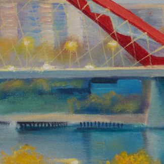 Закажите Картина на холсте маслом "Бугринский мост в осенний день" у компании Бачетта студио, художественный салон-мастерская в Новосибирскена портале Alloy: