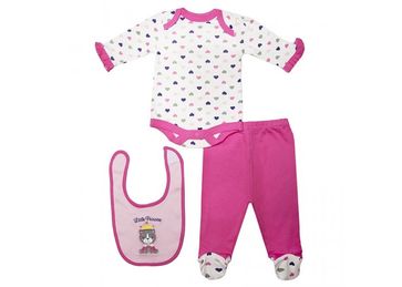 [Артикул: 402-2-2428465] Комплект из трёх предметов для девочки: боди с длинным рукавом, ползунки и нагрудник. Состав: 100% хлопок None Возможен самовывоз. Есть доставка. Доставка: 200.0RUR