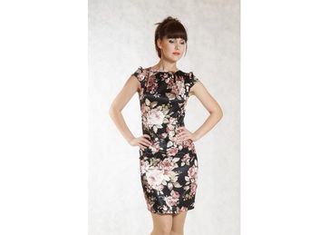 Состав полиэстер 100%. Размеры с 40 по 48. Цвет розы на чёрном. Рост модели 168 см. на ней платье размер 40. Материал сатин.