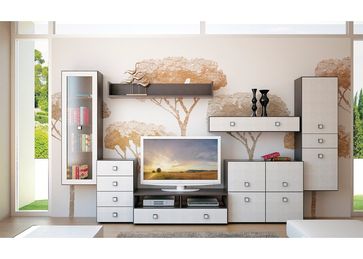 [Артикул: 10048-11-2444160] В комплект входит: Витрина навесная 1w Комод 4s Тумба РТВ-130 Тумба 4d Полка 1d Пенал навесной 2d1s None Возможен самовывоз. Есть доставка. Доставка: 3800.0RUR