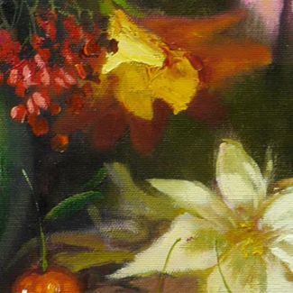 - Картина на холсте маслом "Букет с пионами и черешня" в каталоге Посадка газонов и цветов в Новосибирске;