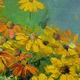 - Картина на холсте маслом "Желтый букет и чайный набор" в каталоге Посадка газонов и цветов в Новосибирске;