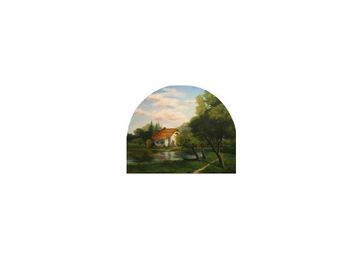 2009 г. 120х120 см. масло, холст Белая хижина с голубыми ставнями и соломенной крышей стоит на левом берегу озера. Сразу за ней начинается смешенный лес. Все утопает в зелени. От двери в хижину до озера ведет тропинка, и чтобы попасть на правый берег нужно переплыть озеро на лодке. Раннее утро. Встающее солнце окрасило проплывающие облака в розовый цвет. Картина художника необычной полукруглой формы, что приковывает к ней дополнительное внимание зрителей. Предоплата обязательна