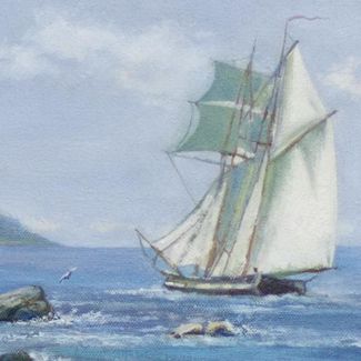 - Картина на холсте маслом "Морской пейзаж с парусником" по выгодной цене 15 000 р. руб.;