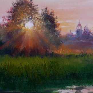 - Картина на холсте маслом "Старая часовня на озере" по выгодной цене 12 000 р. руб.;