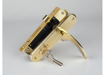- Замок врезной с ручкой, Trodos, 76 SB, Матовое золото в каталоге Ремонт и установка фурнитуры в Новосибирске;