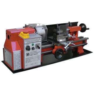Токарный станок по металлу Калибр СТМН-550/350 используется в небольших мастерских для обточки заготовок из металла. Длина обточки составляет 350 мм. Максимальный диаметр устанавливаемой детали - 180 мм. Скорость вращения резца плавно регулируется в диапазоне от 0 до 2500 об/мин, что дает возможность работать с материалами как высокой, так и низкой твердости. Скорость вращения отображается на специальном индикаторе.