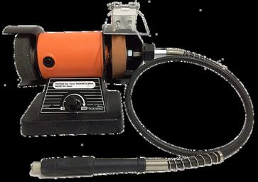 Регулируемые обороты. Подсоединяемый гибкий вал с цанговым зажимом. Длина гибкого вала 1м. Две цанги в комплекте: 2,0/2,35мм. Заточной круг. Мягкий круг для полировки. None