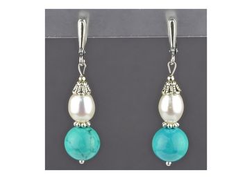 [Артикул: 10202-1-2600651] Серьги с бирюзой и жемчугом. Длина подвески около 35 мм. None Возможен самовывоз. Есть доставка. Доставка: 200.0RUR