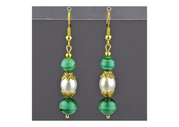 Закажите Бусики-Колечки Серьги Малахит, жемчуг "Мадлена" арт. с2559 у компании Shop-54 в Новосибирске на портале Alloy: