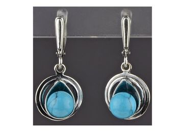 [Артикул: 10202-1-2707936] Серьги с прессованной бирюзой. Металл - ювелирный сплав. Длина подвески 18 мм. None Возможен самовывоз. Есть доставка. Доставка: 200.0RUR