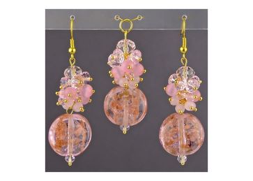 Бусики-Колечки Авторский комплект роз.кварц, хрусталь, мурано "Очаровашка!" арт.БАЛ-3484