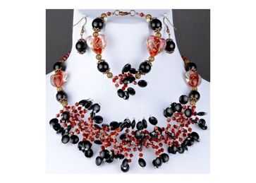 [Артикул: 10202-1-2219197] Авторское украшение из муранского стекла, агата и хрусталя. Длина украшения 53 см; браслета - 18 см, сережек - 4 см. None Возможен самовывоз. Есть доставка. Доставка: 200.0RUR