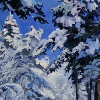 - Картина на холсте маслом "Игра света и тени в снежном лесу" в каталоге Зимние сады в Новосибирске;
