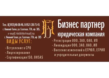 Закажите Регистраци ИП у компании Юридическая компания "Бизнес-партнер" в Нижнем Тагилена портале Alloy: