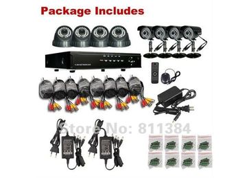 DVR видеосистема 4 цветных купольных камеры для домаSONY 600TVLи 4 цветных камеры для улицыSONY 600TVL.