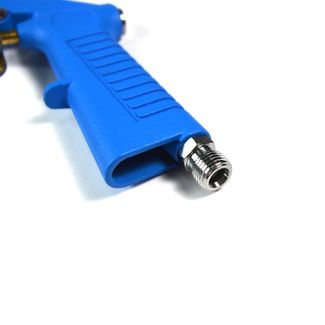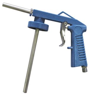 Пистолет-распылитель для пневматического нанесения защитных кузовных покрытий из 1-литровых евробаллонов с резьбовым горлышком. Имеет прочную металлическую конструкцию, снабжен длинным носиком-насадкой большого диаметра для распыления густых материалов.