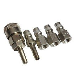 Набор быстроразъемных соединений для пневматических линий в составе 1 клапана быстроразъемного соединения с "елочкой" для пневматического шланга, 3 ниппелей быстроразъемного соединения с "елочкой" под пневматический шланг с внутр. диаметром 9 мм, 1 ниппеля быстроразъемного соединения с внутренней резьбой 1/4" Бесплатный самовывоз в 35 пунктах