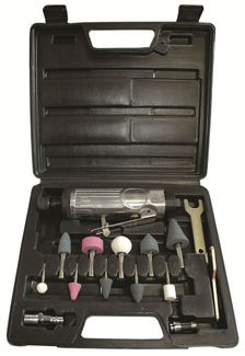 Пневматическая зачистная машинка с аксессуарами в кейсе; в комплекте 10 шлиф. насадок с 3- и 6-мм хвостовиками и 2 цанги; рабочее давление воздуха 6-8 бар, потребление воздуха 113 л/мин, скорость вращения 25.000 об/мин, воздушное соединение 1/4", вес 0.36 кг Бесплатный самовывоз в 35 пунктах