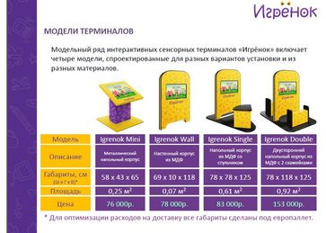 - Детский развлекательный терминал "ИГРЁНОК" по выгодной цене 76 000 р. руб.;