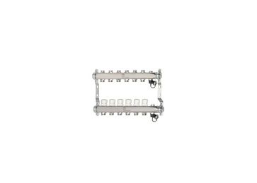 Поставляется в предварительно собранном виде. Укомплектован кронштейнами, для крепления в распределительном шкафу или на стене, двумя заглушками, воздушниками и кранами для операций заполнения/слива системы. Присоединение 3/4 под евроконус. На каждой отходящей линии распределителя подачи установлен запорный вентиль. На каждой входящей линии распределителя обратки установлен регулирующий вентиль.
