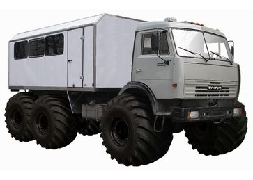 Вездеходное шасси «Тунгус» грузоподъемность 6 тн Вездеходное шасси «ТУНГУС» предназначено под монтаж различных установок и может эксплуатироваться по всем видам дорог и бездорожью. Ведущие оси – полный привод. Поворот машины осуществляется с помощью поворотного шарнира, соединяющего две полурамы. Горизонтально-поворотный шарнир (с двумя степенями свободы) относительно вертикальной оси поворачивается на 30° в каждую сторону, а горизонтальной относительно оси поворачивается на 15° в каждую сторону. Относительно вертикальной оси происходит поворот вездехода. Относительно горизонтальной оси полурамы поворачиваются, снимая разрушающие нагрузки, и равномерно перераспределяя их по всем мостам. Двигатель Камминз – 245 лс
