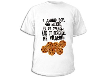 - Футболка От печенек не уйдешь по выгодной цене 530 р. руб.;