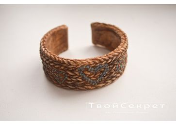 Браслет выполнен вручную. Диаметр около 7 сантиметров. Толщина около 5 миллиметров.