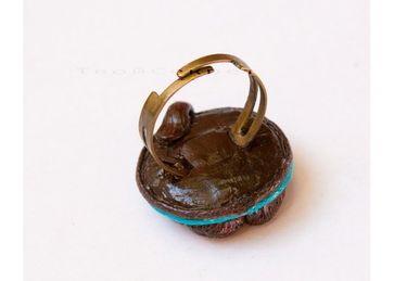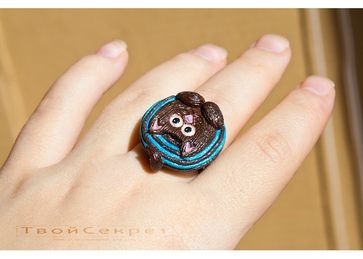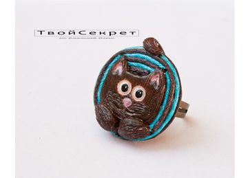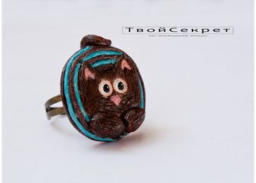 За сим сотворилось такое очарование - Полосатый Кот. Кольцо. Размер имеет универсальный. Сам "Кот" в коричнево-бирюзовой гамме около 3,5 см в диаметре. Наслаждайтесь вашим новым любимцем!
