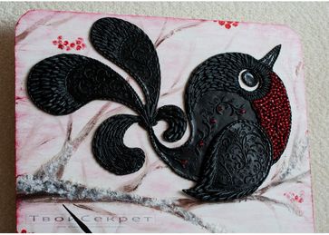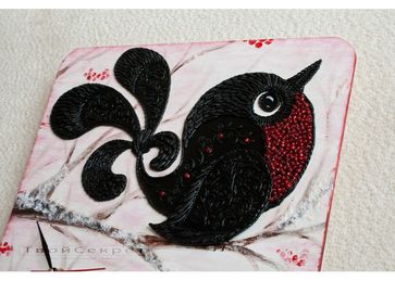 Эксклюзивные часы ручной работы сочетают в себе дерево и полимерную глину. Основной элемент - Птица выполнена полностью в ручную и не подлежит повтору! Основа часов - фанера расписанная вручную с небольшим количеством фактурного "снега".