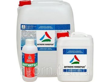 Антикрас-Универсал поставляется в виде вязкой, тиксотропной, пастообразной массы. В зависимости от типа лакокрасочного покрытия смывка может быть разбавлена водой на 10-20%, что делает её применение экономически более выгодным. Препятствует возникновению коррозии.