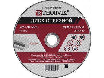Закажите Диск отрезной абразивный по металлу, 230х2.5х22 мм, ACD23025, Thorvik у компании Юмакс-Трейд, ООО в Перми на портале Alloy: