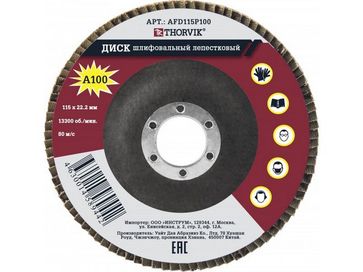 - Диск шлифовальный лепестковый торцевой, 115х22.2 мм, Р100, AFD115P100, Thorvik в каталоге Офтальмологические инструменты в Перми;