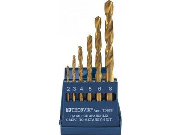 - Набор спиральных сверл по металлу HSS TiN, d 2.0-8.0 мм, TDBS6, Thorvik по выгодной цене 160 р. руб.;