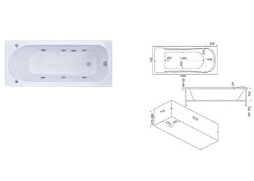 Объем воды до верхнего сливного отверстия - 190 лГлубина ванны по центру - 450 ммВысота экрана - 590 ммКоличество гидромассажных форсунок - 6 шт