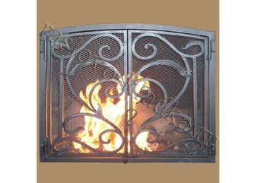 Дверца для камина кованая двухстворчатая с искрозащитной сеткой. None