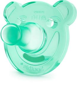 Цельнолитая силиконовая пустышка Avent Philips Soothie для детей 0-3 месяцев. Щиток мягкий, сделан в форме медвежонка. Форма пустышки разработана с учетом строения неба ребенка и особенностей развития его десен и зубов. Минимальная сумма заказа 1500 руб. Возможен самовывоз. Есть доставка.