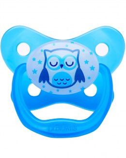 Пустышка Dr.Brown’s PreVent ночная 0-6 мес. Сова голубая выполнена таким образом, что не мешает формированию у малыша правильного прикуса. Воздушный канал помогает снизить давление на небо при сосании. Соска изготовлена из мягкого силикона, не травмирующего нежную кожу десен, имеет грушевидную форму и тонкое основание. Выдерживает обработку высокими температурами. Светящиеся узоры помогут легко найти ее в темноте. Минимальная сумма заказа 1500 руб. Возможен самовывоз. Есть доставка.