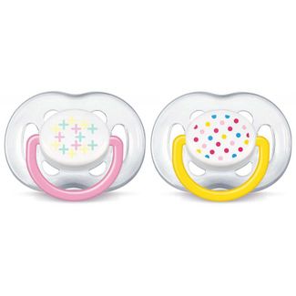 Пустышка силиконовая Avent"Free Flow Design", 6-18 мес., 2шт., для девочки, арт. 86404
