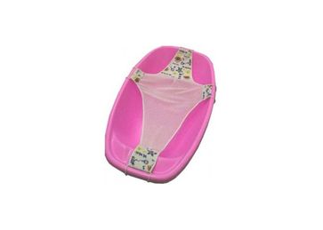 Подставка для купания выполнена из хлопчатобумажной ткани и сетки, имеет металлические крючки, с помощью которых крепится на ванночку. Предназначена для поддержки ребенка в процессе купания. None