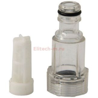 Коннектор со встроенным фильтром очистки воды ELITECH 0910.002400 предназначен для тонкой очистки воды поступающей в мойку высокого давления из водопровода или емкости. Совместим со всеми мойками Elitech.