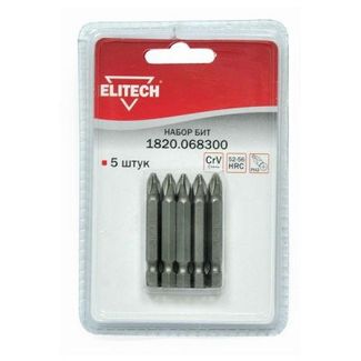 Набор бит ELITECH 1820.068300, CrV, 5 штук, блистер, PH2 x 50мм.