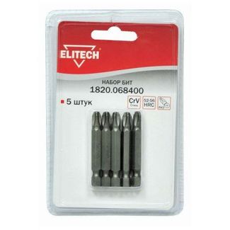 Набор бит ELITECH 1820.068400, CrV, 5 штук, блистер, PH3 x 50мм.
