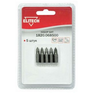 Набор бит ELITECH 1820.068500, CrV, 5 штук, блистер, PZ1 x 25мм.