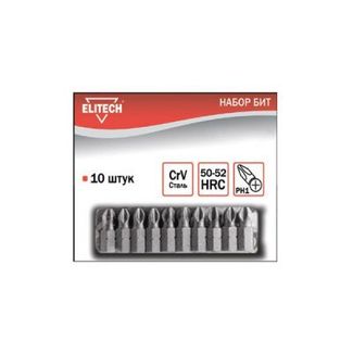 Набор бит ELITECH 1820.070200 50 мм, 10 штук, CrV, пластиковый бокс, PZ1.